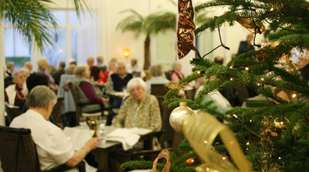 Die Seniorenresidenz Felkebad und das Ambulante Pflegeteam D. Bohn/ S. Dech Martin hatten ihre Senioren in die feierlich geschmückte Afrika Lounge eingeladen. Trotz widriger Wetterverhältnisse waren nahezu alle Sitzplätze von den freudig erwartenden Senioren besetzt. Nach der Begrüßung konnten die Senioren Kaffee und (gespendeten) Kuchen sowie Gebäck aus einem reichhaltigen Angebot wählen. Da sich fast alle Besucher aus vergangenen Veranstaltungen kannten, war jeder der Senioren schnell in angeregte Gespräche unter »alten« Bekannten vertieft.