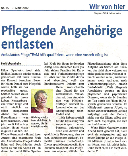 Das Ambulante Pflegeteam Bohn/Dech-Martin versorgt mehr als 200 Klienten mit über 40 Mitarbeitern, die in der Region Bad Sobernheim und Kirn im Einsatz sind.